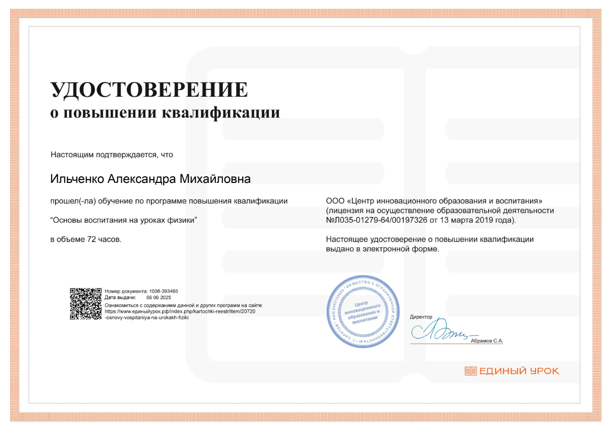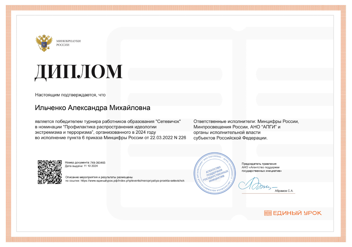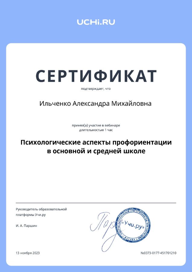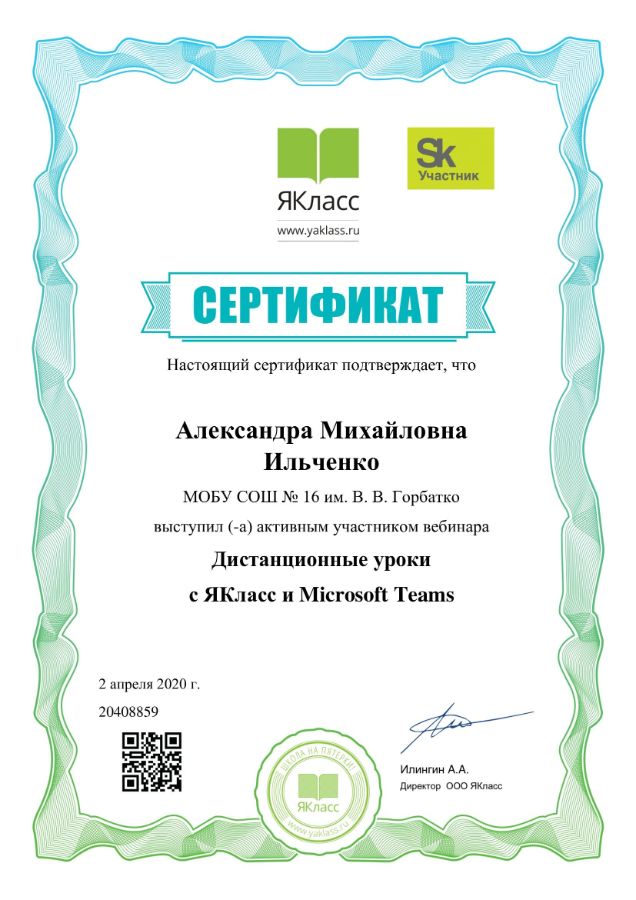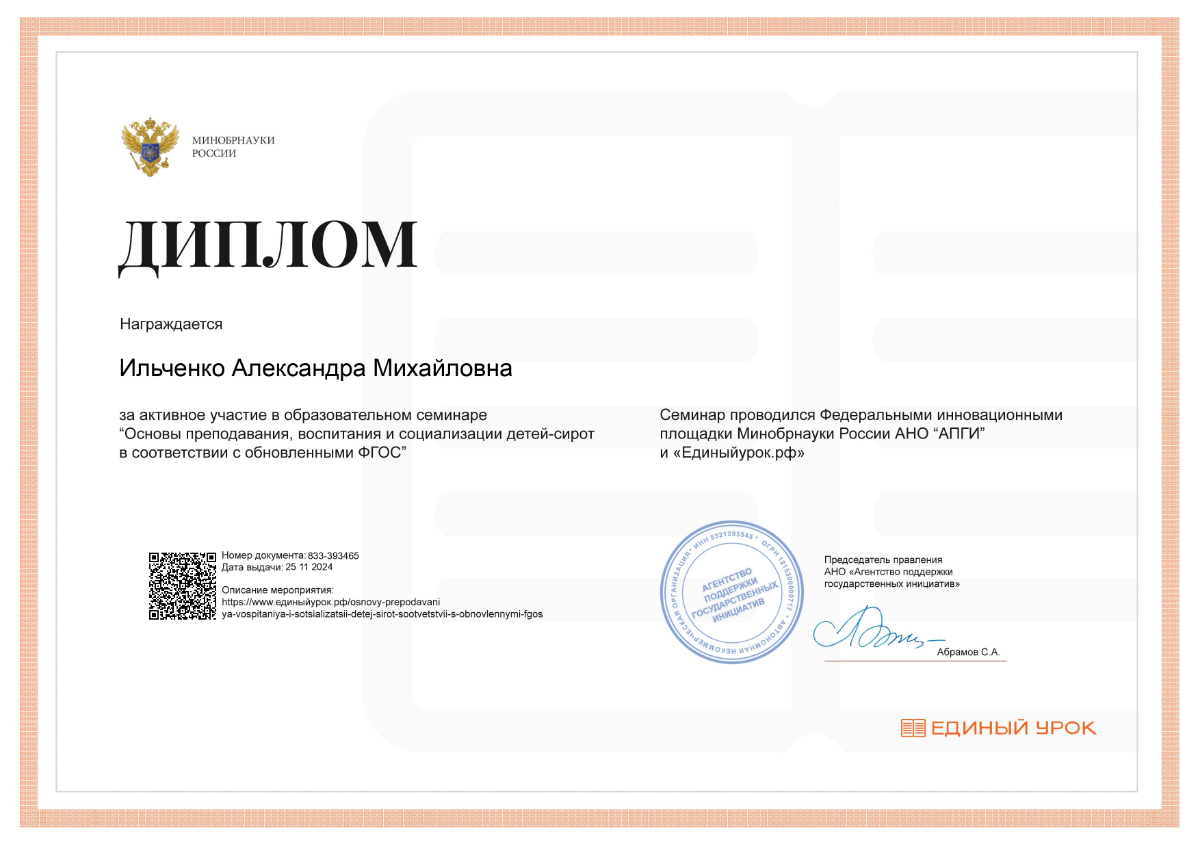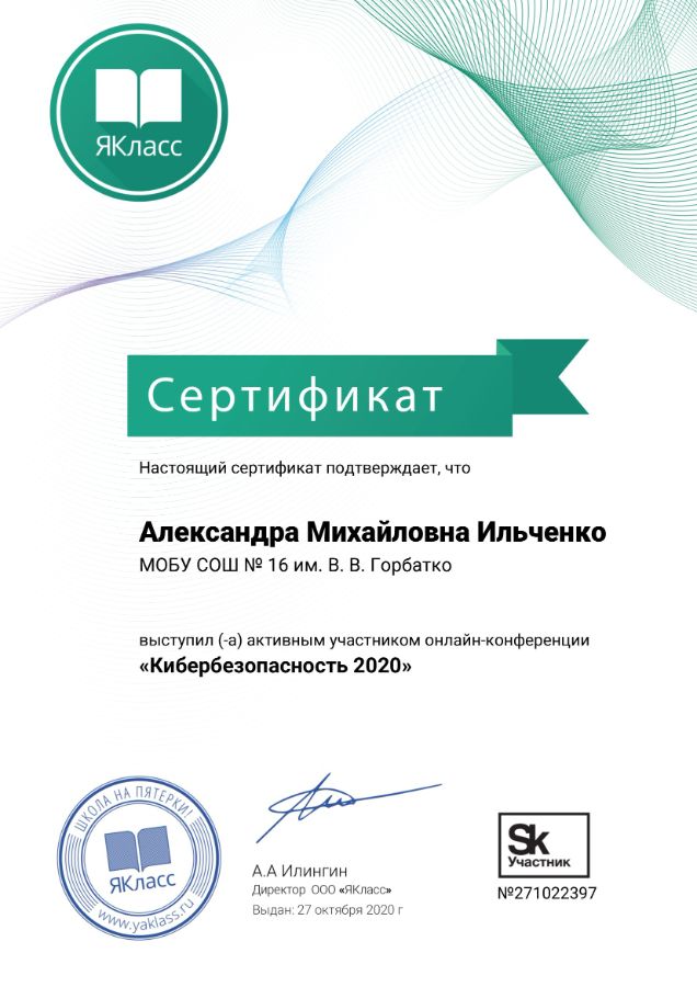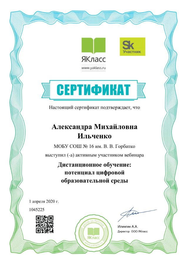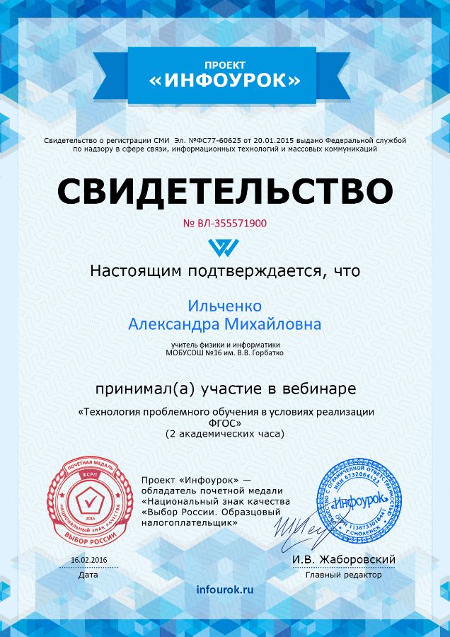 Место работы: МОБУСОШ №16 им. В.В. Горбатко п. Восход муниципального образования Новокубанский район